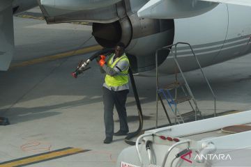 Seorang pekerja bersiap mengisi bahan bakar pesawat di Bandara LaGuardia, New York, Amerika Serikat, Kamis (23/04/26). Maskapai-maskapai besar di Amerika Serikat tengah menghadapi dampak finansial yang signifikan akibat melonjaknya harga bahan bakar jet yang dipicu konflik berkepanjangan di Timur Tengah, sehingga memaksa sejumlah operator memangkas atau menangguhkan proyeksi kinerja tahunan mereka. ANTARA FOTO/Xinhua/Zhang Fengguo/bar