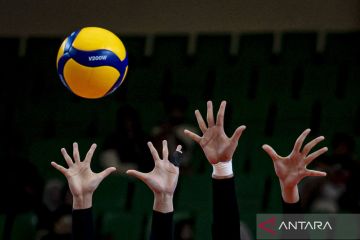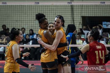 Sejumlah pevoli Jakarta Popsivo Polwan berselebrasi usai mencetak poin atas tim Jakarta Electric PLN Mobile pada pertandingan Final Four Proliga 2026 di GOR Jatidiri, Semarang, Jawa Tengah, Sabtu (18/4/2026). Jakarta Popsivo Polwan menang dengan skor 3-1 (21-25, 27-25, 25-19, dan 25-18). ANTARA FOTO/Aprillio Akbar/wsj.