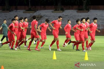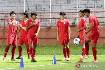 Pesepak bola Timnas Indonesia U-17 mengikuti latihan menjelang laga ASEAN U-17 Boys Championship atau Piala AFF U-17 2026 di Stadion Gelora 10 November, Surabaya, Jawa Timur, Sabtu (18/4/2026). Timnas Indonesia U-17 akan menghadapi Timnas Vietnam di pertandingan grup A Piala AFF U-17 2026 pada Minggu (19/4) di Stadion Gelora Delta Sidoarjo. ANTARA FOTO/Umarul Faruq/wsj.