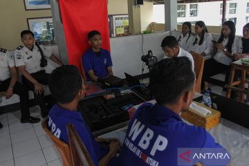 Petugas Dinas Kependudukan dan Pencatatan Sipil (Disdukcapil) Flores Timur memotret Warga Binaan Pemasyarakatan (WBP) untuk pembuatan KTP elektronik di Rutan Kelas IIB Larantuka, Flores Timur, Nusa Tenggara Timur, Senin (27/4/2026). Disdukcapil Flores Timur bersama Rutan Kelas IIB Larantuka melaksanakan perekaman KTP elektronik bagi 112 WBP untuk pemenuhan hak konstitusional. ANTARA FOTO/Mega Tokan/bar