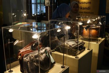 Pengunjung mengamati koleksi yang dipajang pada pameran museum bersama bertema Women of Light: Tracing Courage Across Time di De Javasche Bank, Surabaya, Jawa Timur, Sabtu (25/4/2026). Pameran yang menampilkan sejumlah koleksi dari Museum Bank Indonesia, Museum Monumen Kesatuan Pergerakan Wanita Indonesia, Museum Kebangkitan Nasional, Museum R.A. Kartini, Museum Dr Soetomo, Museum Sepuluh Nopember, dan Museum Nasional Indonesia itu guna menyediakan ruang edukasi publik yang menghadirkan narasi sejarah perempuan dari masa ke masa. ANTARA FOTO/Didik Suhartono/foc.