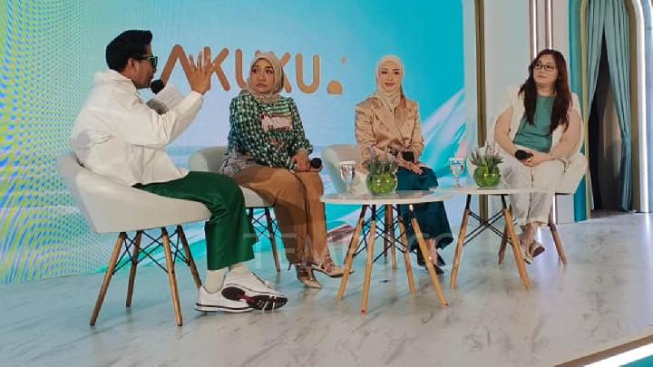 Pakar kesehatan kulit July Iriani Rahardja (kanan), Nikita Willy(tengah), dan Head of Marketing Makuku Sulistyowati (kiri) pada sesi talkshow kesehatan kulit bayi di Jakarta, 24 April 2026. Tempo/Andara Angesti