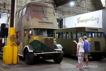 Pengunjung melihat berbagai model bus antik di Museum Bus Sydney di Sydney, Australia, MInggu (19/4/2026). Museum Bus Sydney yang didirikan pada tahun 1986 ini telah direstorasi dan memamerkan berbagai macam kendaraan bus yang berasal dari tahun 1920 hingga 2000. ANTARA FOTO/(Xinhua/Ma Ping/agr